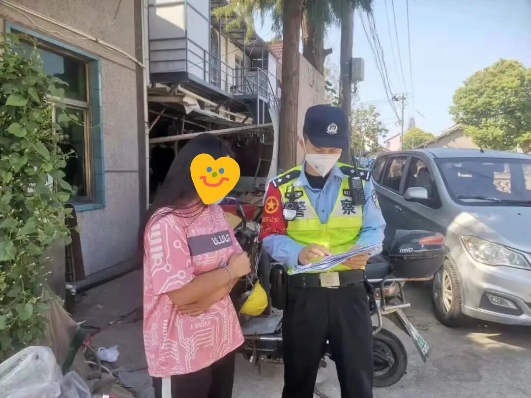 【20时】杨思派出所青年突击队员吴翟灵在辖区进行非机动车违法行为整治。