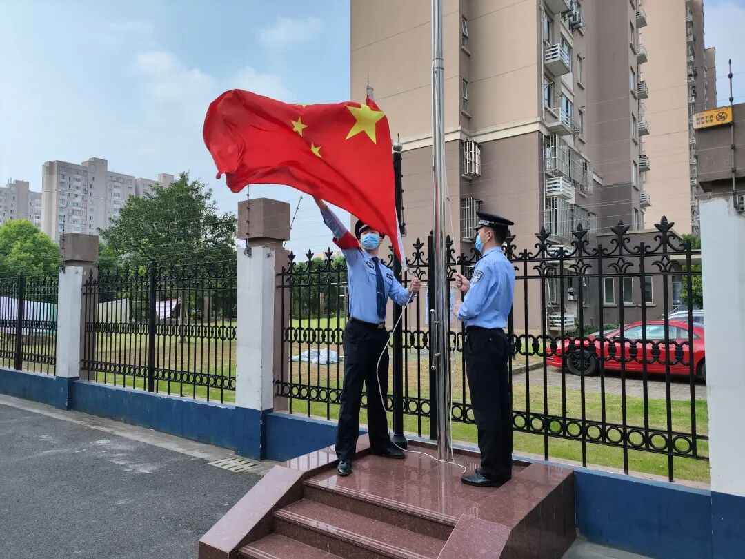 【8时】北蔡派出所青年突击队举行升旗誓师仪式。