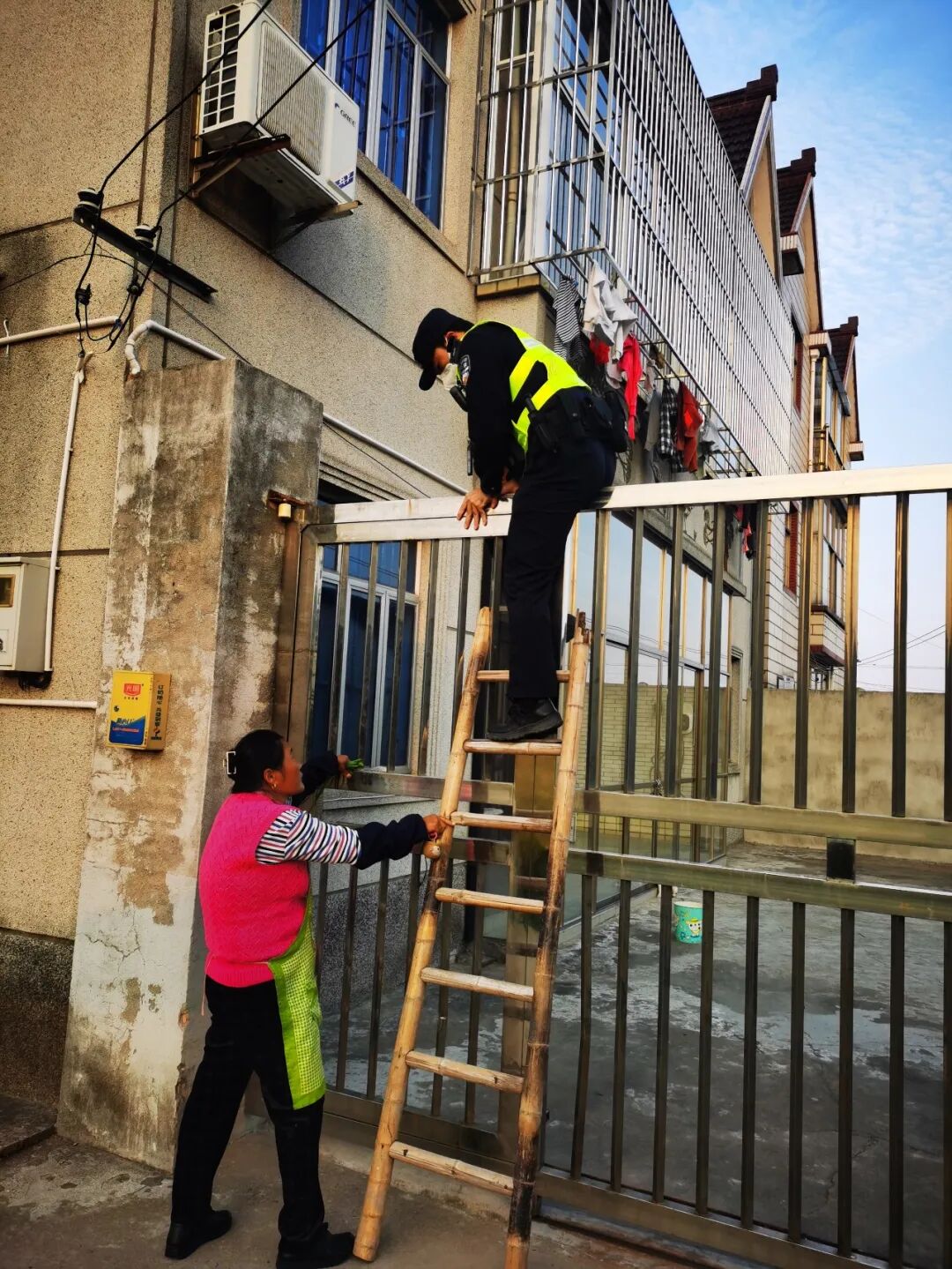 危急关头 民警借来了梯子