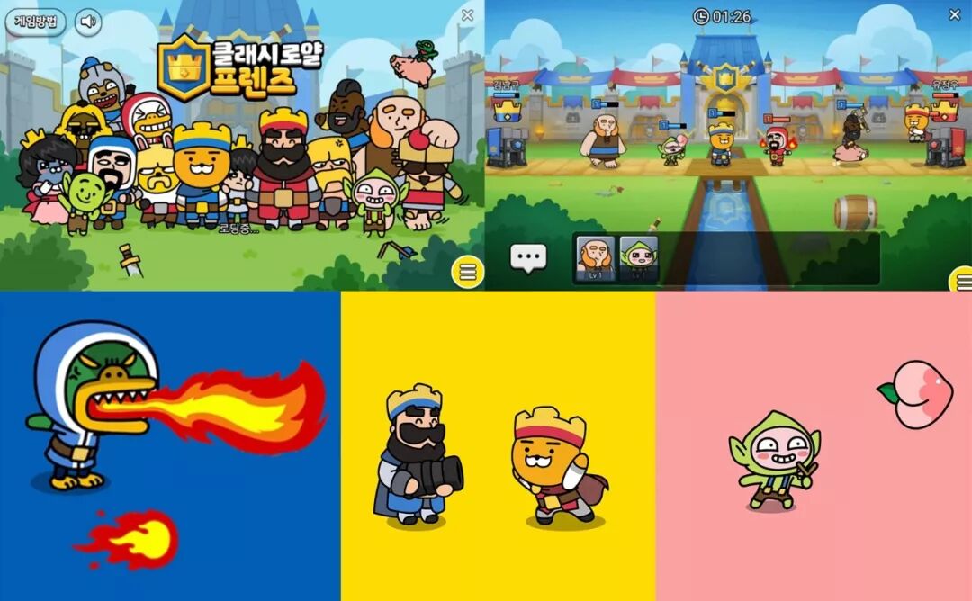 Supercell公司制作的著名游戏《皇室战争》与Kakao Friends一起做了一款小游戏,在这款游戏里,皇室战争和Kakao Friends的角色被重新设计。