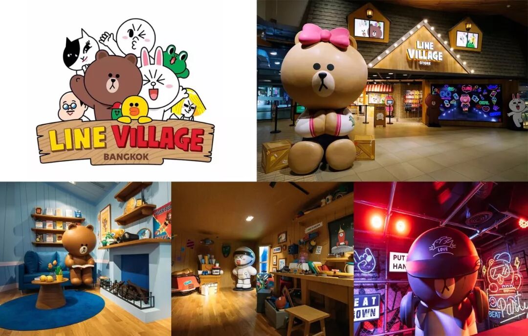 LINE Friends去年在泰国开了一个名为“LINE Village”的小型主题公园。当人们参观这个世界上的第一个室内景点时,可以看到实际尺寸的角色和在23个不同主题的房间里享受。 LINE Friends商店不仅是一个销售商品的地方,也是可以让人们享受乐趣并拥有全新体验。今年他们也准备在上海开设另一个主题公园。