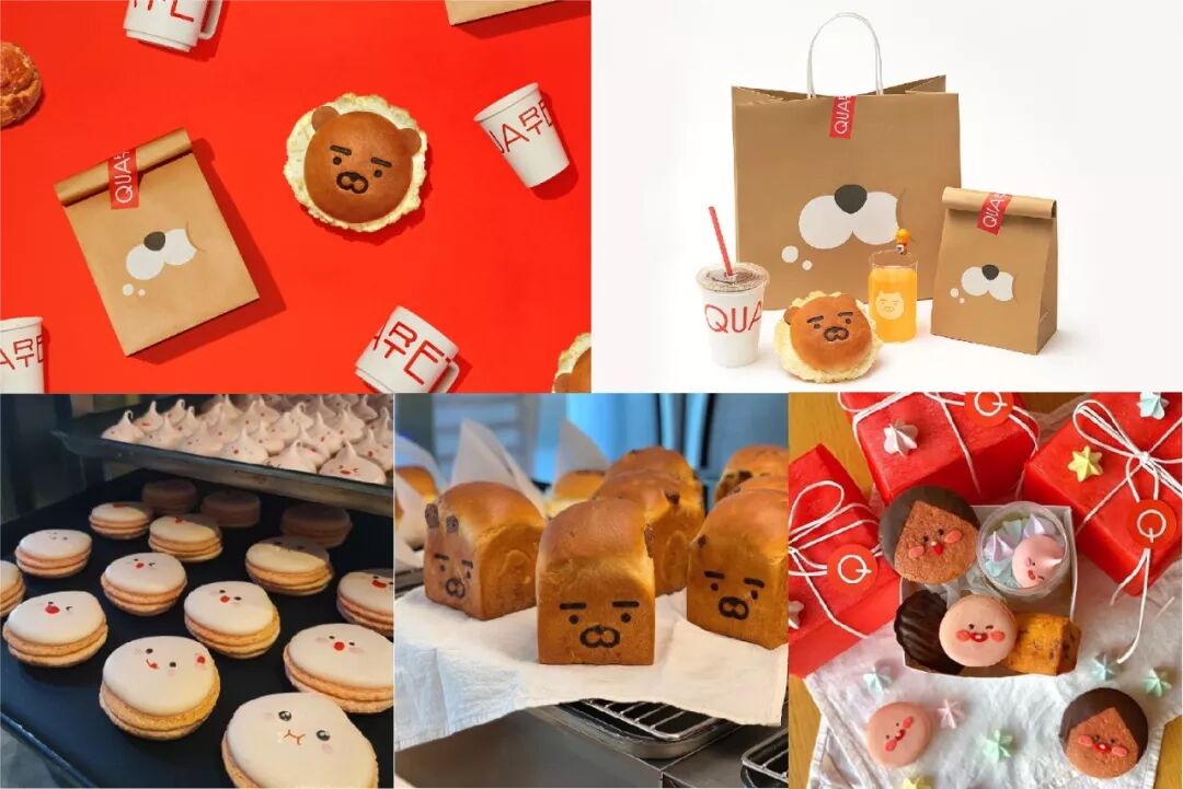 Kakao Friends 江南旗舰店在三楼开设了第二家咖啡馆与四重奏面包店,并发布了两者合作的菜单与商品。除咖啡的所有包装之外, Kakao Friends的角色也被应用于面包之中,给四重奏品牌带来趣味性与机智性。