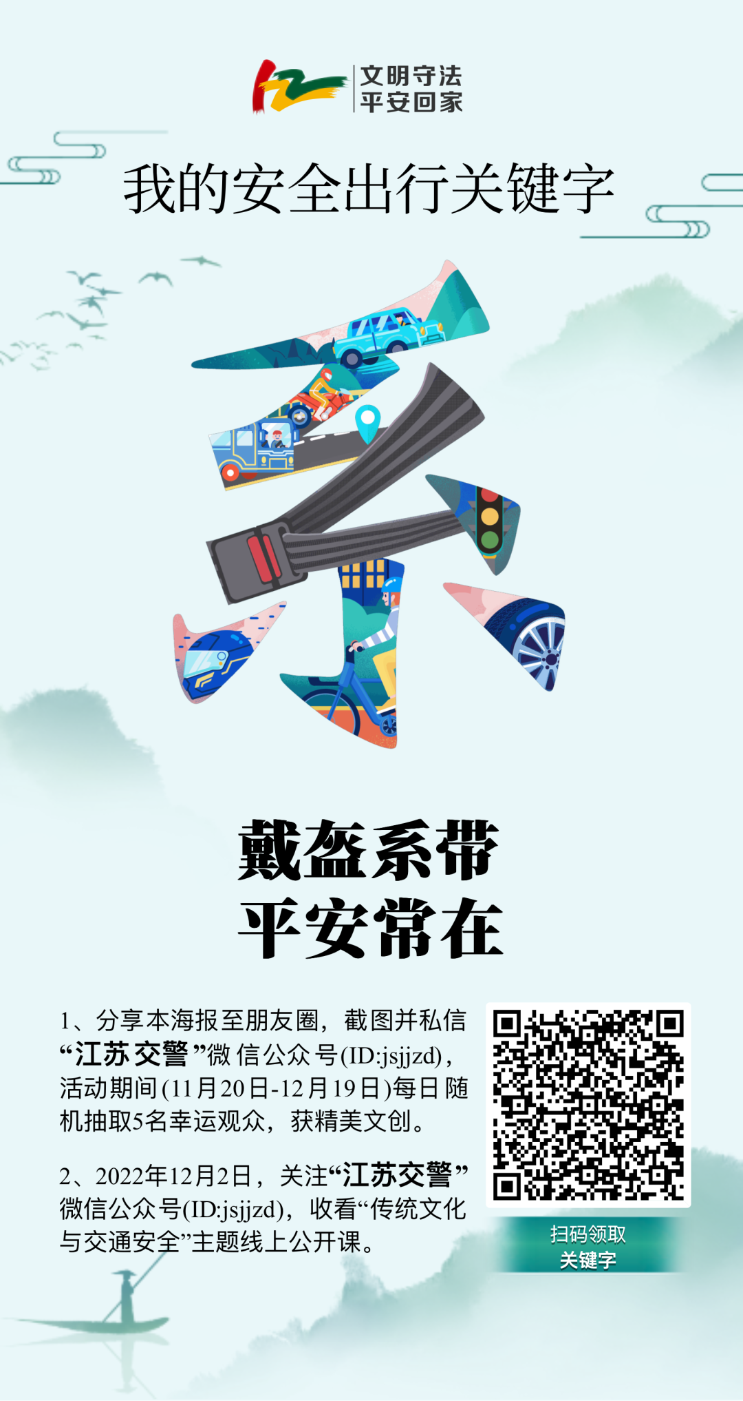 (1)2022年12月2日,关注“江苏交警”微信公众号,收看“传统文化与交通安全”主题线上公开课。