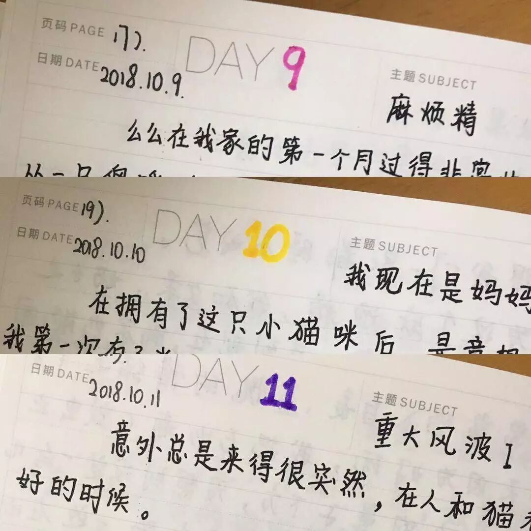 又或许真正让我心动的,还有“DAY”后面的数字,“1,2,3,...”用不同颜色的笔标记下的,好像是生活的轨迹,从老鼠进门到猫咪养成。