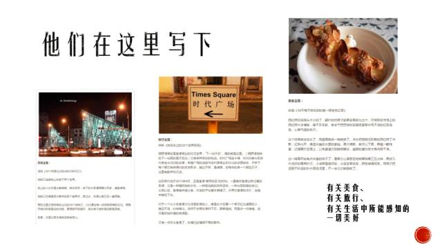 在选定主题后,参与者可以确定下一个具体的带有个人色彩的写作方向。如:戒!烟!(作家张春),馋痨胚(作家许佳),带13岁的孩子去印度(三明治创始人李梓新),当我们在谈论蹭饭时我们在谈论什么(编辑半半),不要独自旅行(签约作者郝思嘉)等。