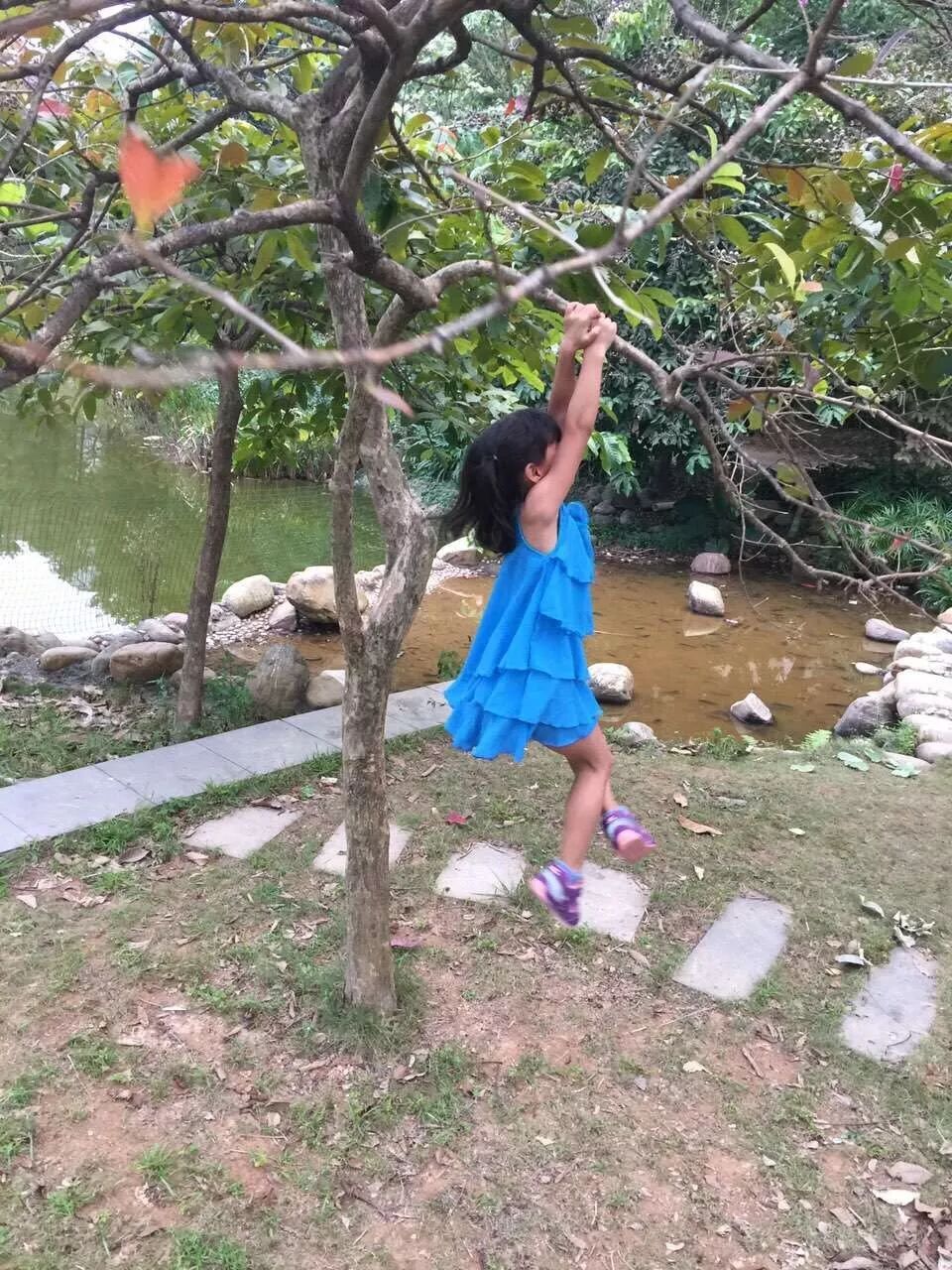 我看过她小小的身躯挂在游乐场上蓝色的攀吊架上,细细的手臂快速交换,像长臂猿一样前移,在架子的末端,“噌”地跳到地面上,那样得轻盈。留我在原地惊得下巴都要掉下来。“不用担心,妈妈!”她笑嘻嘻地喊,从我面前嗖地跑过,又挂到了攀吊架的另一端。