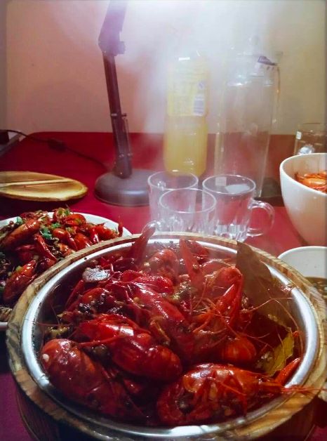 记得杨璐做了三种味道的小龙虾,麻辣、蒜香、五香,还有额外一道避风塘炒蟹。那天在她不是很宽敞还堆满各种箱子的客厅,我,她,她男朋友,三人一起扫光了一桌红盔甲。