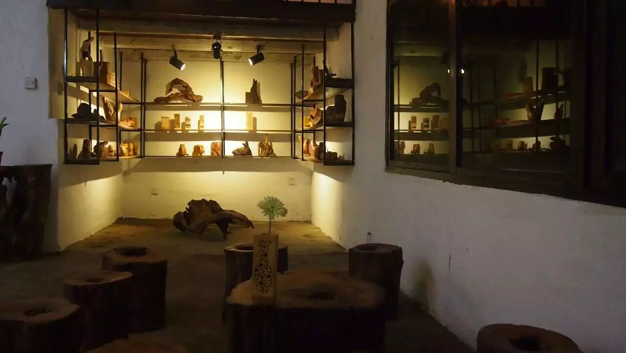 试验室的全称是“半山素舍-木质手工试验室”,以半山为名,以素舍为家。在这个试验室里,查体照想要做的是“将树的生命以另外一种形式延续。老根雕师傅们瞧不上眼的废木料,他也当宝似的,捡回试验室进行简单加工,使老木头的生命可以得到延续。“即便是一根枯枝,放在家里也是一种装饰。”他把试验室的一个区域划分为生产加工区域,配备了专业、完备的工具,而其他区域则作为产品的展示区和休闲区。