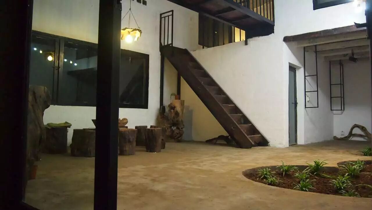 五月初,他们开始对房子的改造,清理地面、砌墙、掉脚线、上正梁、搭横梁、做自己中意的门窗、设计外墙的不规则机理、铺水泥地板,从旧木市场淘来老楼梯连接一楼的展厅和二楼的生活空间,在二楼搭建天桥,使整个空间有lofter的感觉,最后给院子里的老桃树安家。前前后后花了近一个月的时间,这个过程让查体照很头痛,小到房子排水怎么解决,屋里的电线怎么排,大到怎么做工不超出预算,这都是他每天要考虑的问题,好在家人都来帮忙,弟弟也懂一些排水、排线路,所以建造的过程也算顺利。就连为他提供门窗材料的老板摸不着查体照究竟想要的效果是什么,好几次劝说他安铝合金的门窗时,都被他按自己认定的风格坚持了下来。