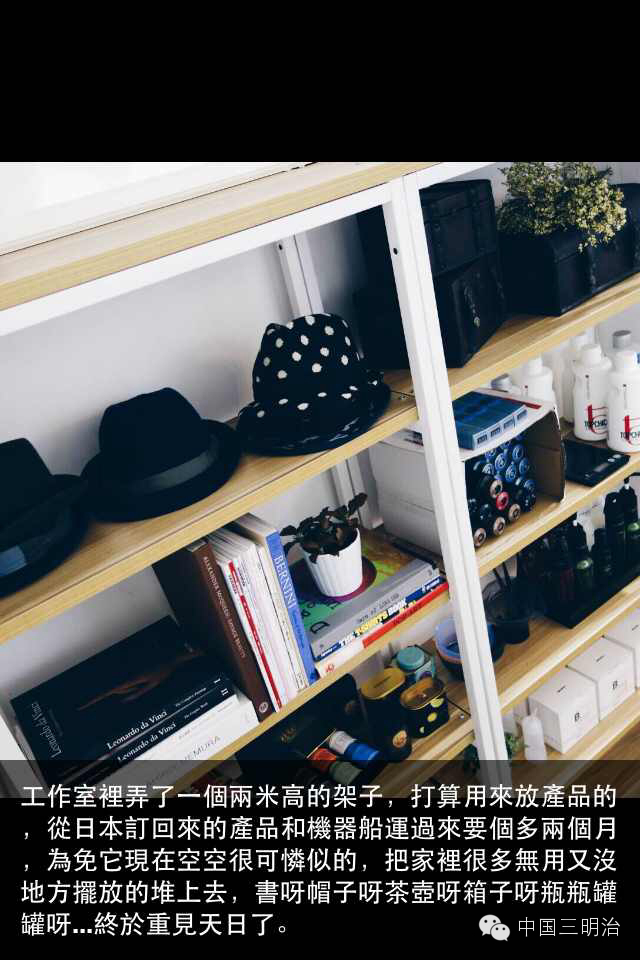 房间的一角被隔成洗头间,然后还有木楼梯通向复式的小二层。楼梯边是咖啡机,以及他的电脑工作台。几樽药水,几盒发膏清雅地摆在搁架上。木地板居然一尘不染。在这样安静的空间,一个专业美发师为你服务,定制发型,喝喝咖啡,交谈人生。让人有些恍惚:剪头发也可以有这样的体验?