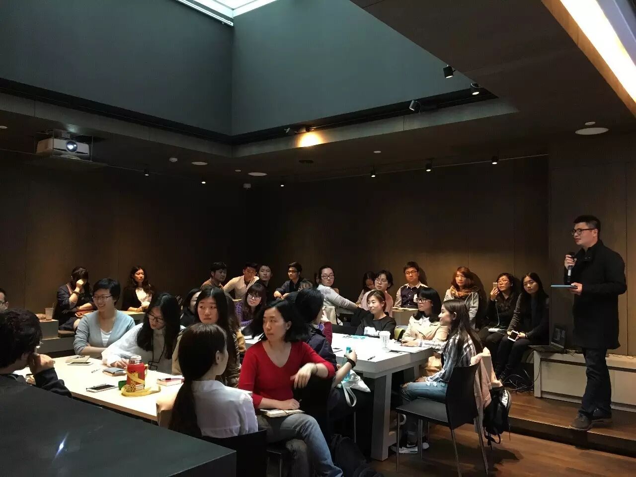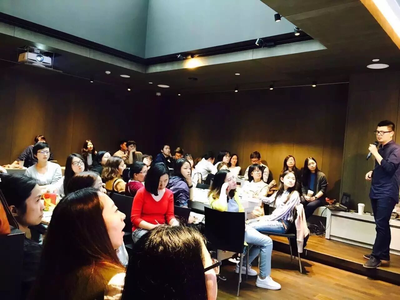 学员们认真聆听两位嘉宾的回答,并思考着如何通过这次采访完成采访练习的习作。