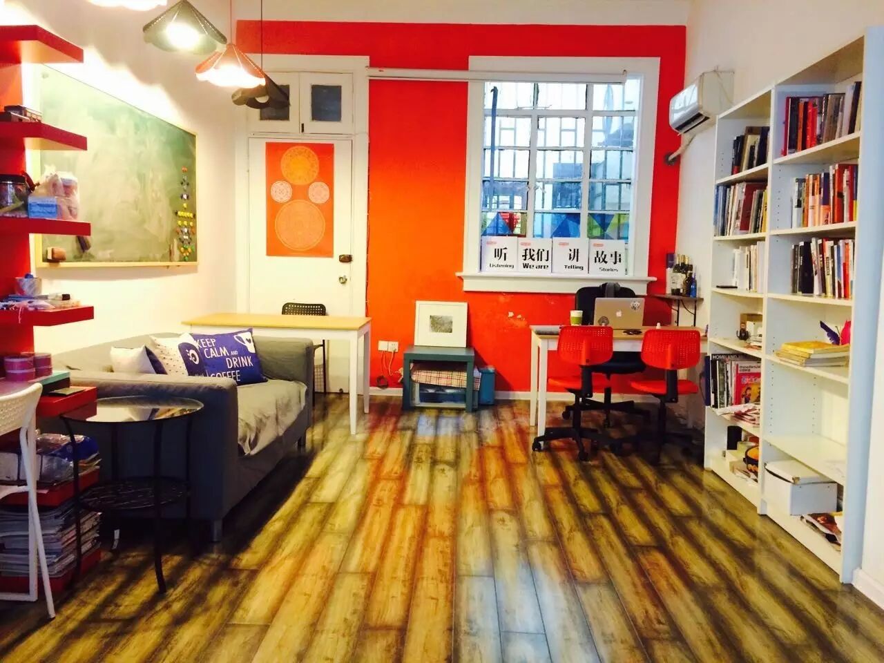 2014年春天,我厌倦了传统媒体的模式,和太太租下上海五原路一个陈旧的两室民居,一间刷成蓝色,一间刷成红色。蓝色的给她做儿童英文图书馆,红色的,我找书法家朋友在墙上写了几个大字“故事公园”,成为一个写作的工作室。“故事公园”随后成为一个地名,在百度地图上可以搜到。某一天在路口我碰到有人说在寻找这里的一个公园,我只能抱歉地告诉他,这里只有故事,没有公园。