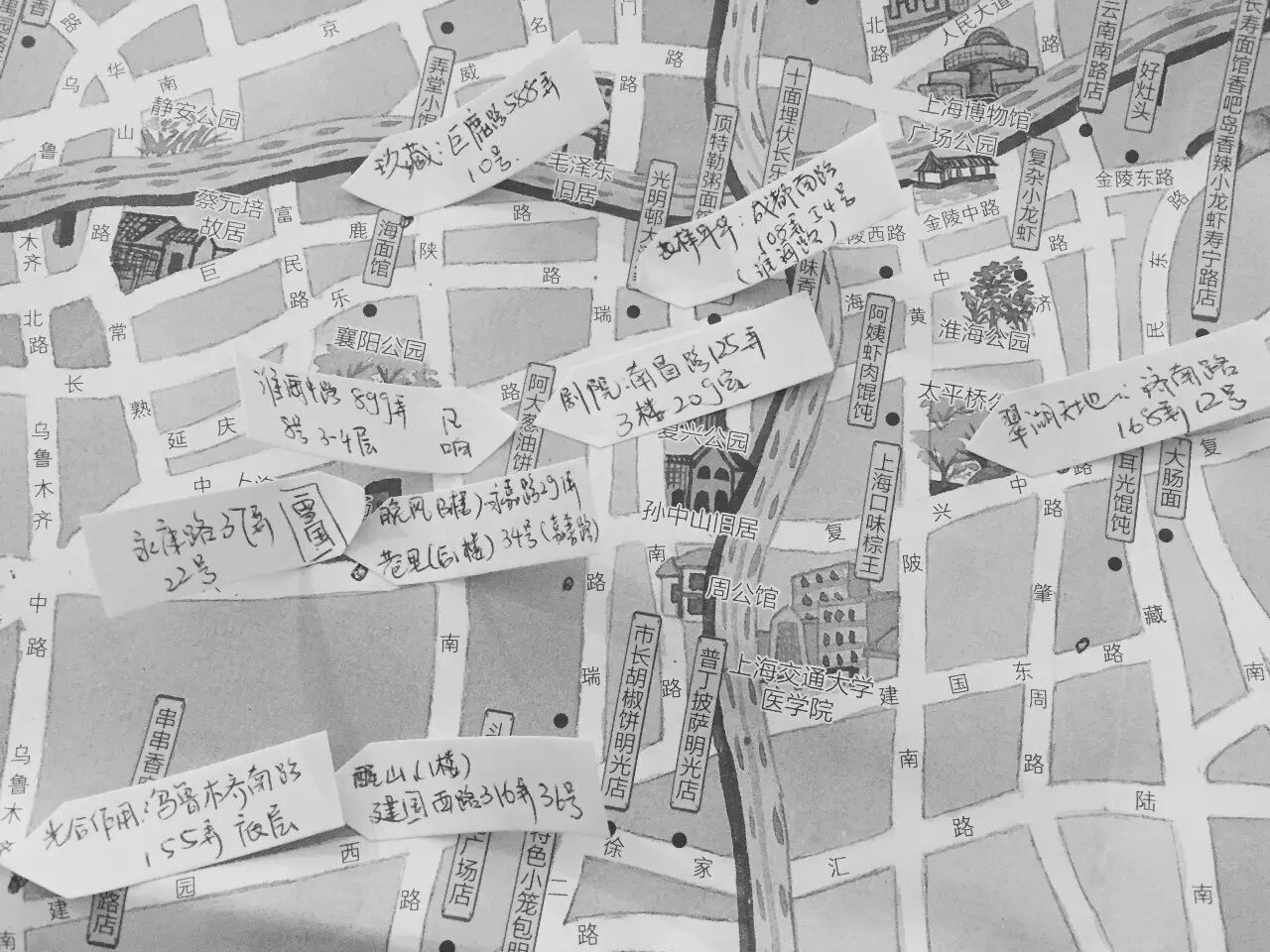 在杨晔的随身包里,一直都放着一张上海市区的手绘风地图。小长条形的彩色便利贴围绕乌鲁木齐路,淮海路一带的马路上贴了整整一圈。每一张便利贴上都写着她要管理的Airbnb的房子位置。