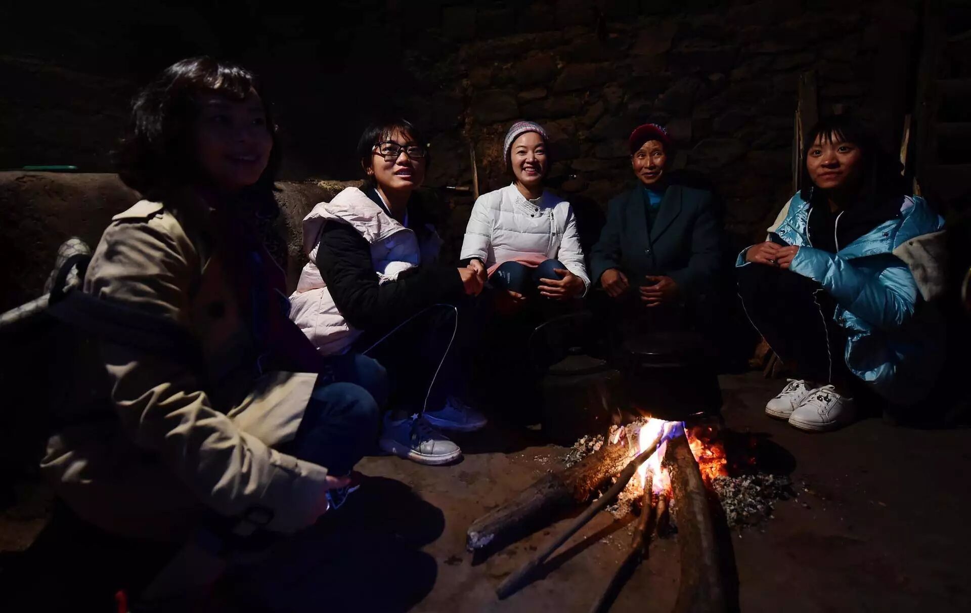 墙角垒起的十几张矮凳被一一摆放在火塘周围,李会梅的父亲招呼着我们坐下。