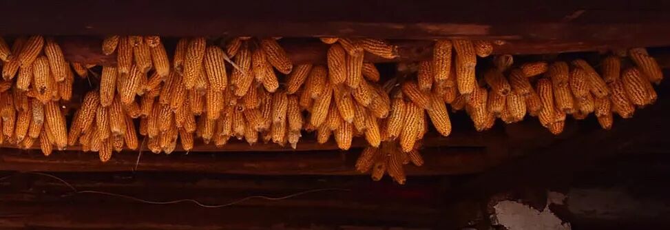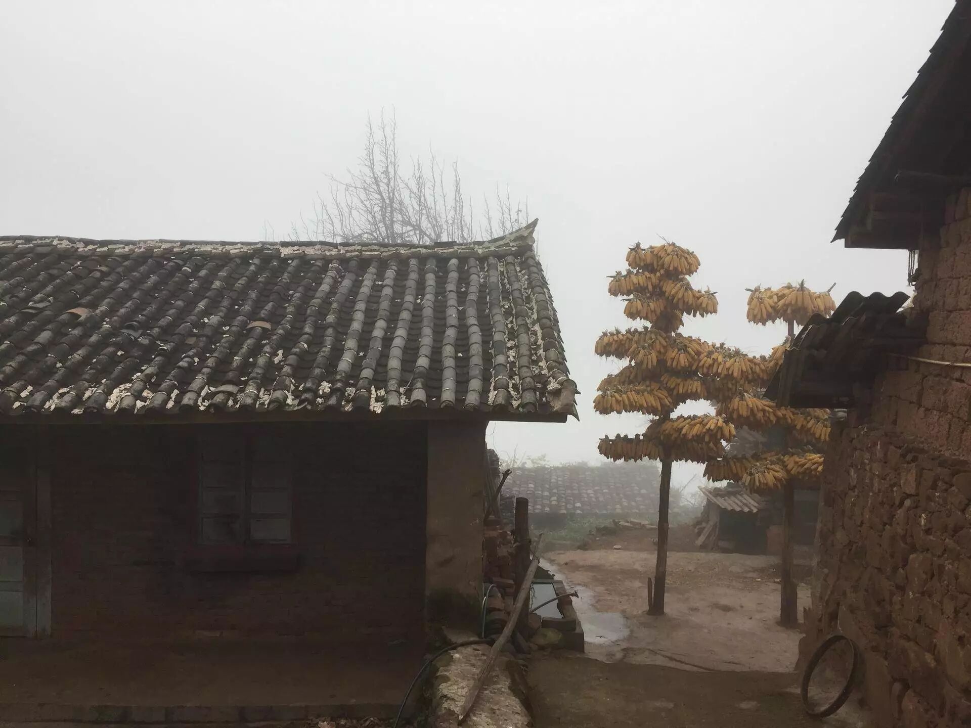我们没见着李琼丽家的玉米地,却窥见了别家院子里的“包谷树”,光溜溜的树干上挂着满满当当的包谷,干黄干黄的、沉甸甸的。