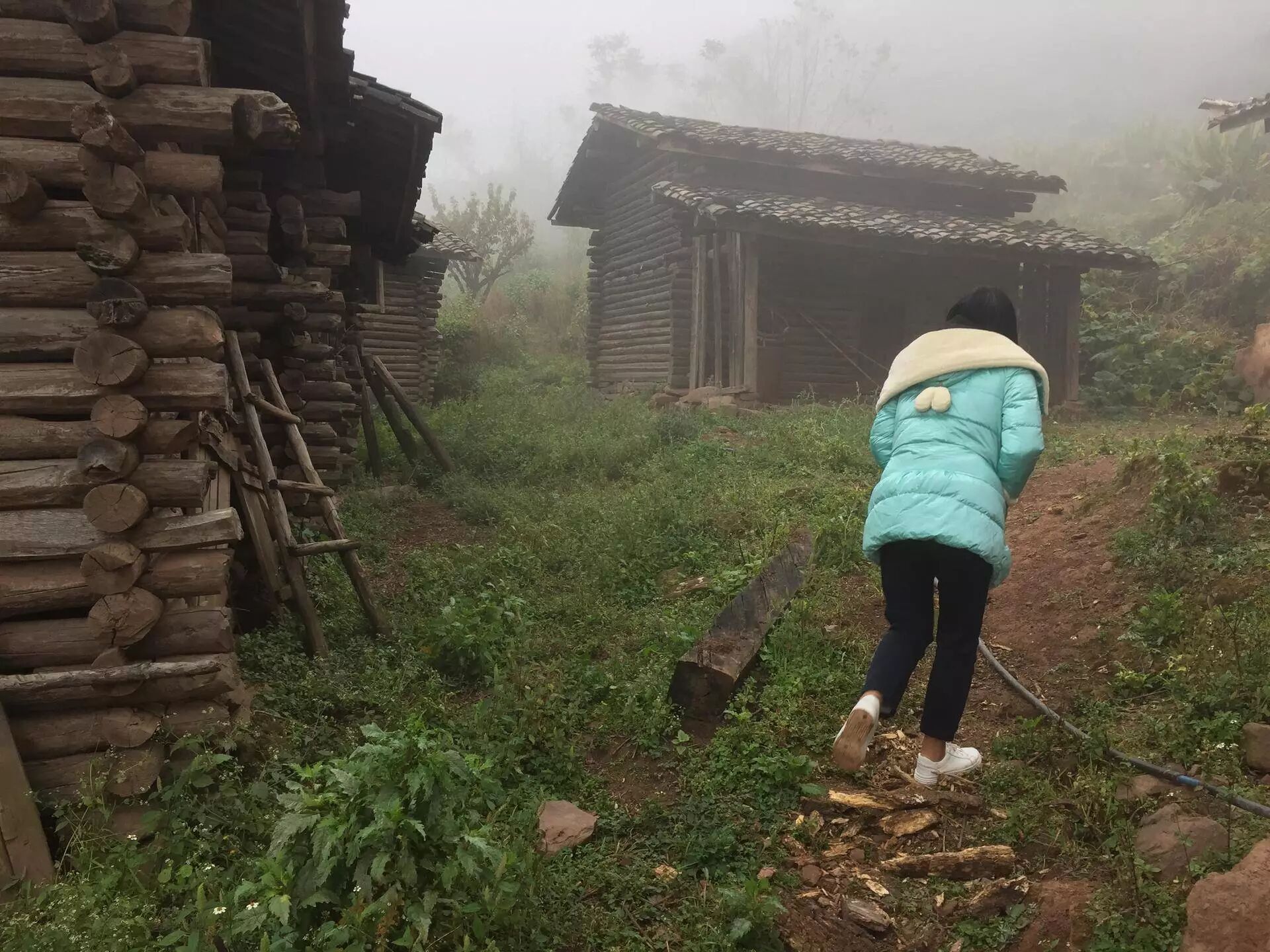 山间弥散着白色泛青的雾气,来时路已看不清,山壁间戳出来零星几朵极小的鬼针草的白色小花,一不小心便会错过。
