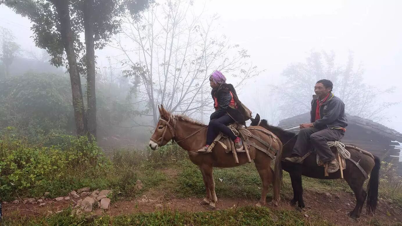 山路仅一米来宽,在李会梅的记忆里,这条山路刚修好大约两年时间,在此之前,想要下山,只能靠两条腿。现在村民上下山的主要交通工具是摩托和马匹,李会梅上一次回家,便是坐在父亲骑的摩托后座一路穿梭而归。