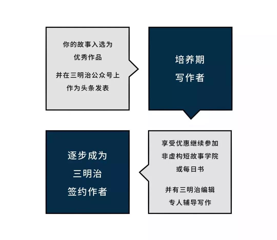 如果你的故事入选为优秀作品,并在三明治公众号上作为头条发表,你将成为三明治的培养期写作者,享受优惠继续参加非虚构短故事学院或每日书(点击了解每日书)。三明治编辑会与你讨论选题、指导你独立完成完整的长文章。