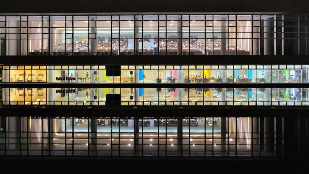 夜晚的图书馆,和它的倒影