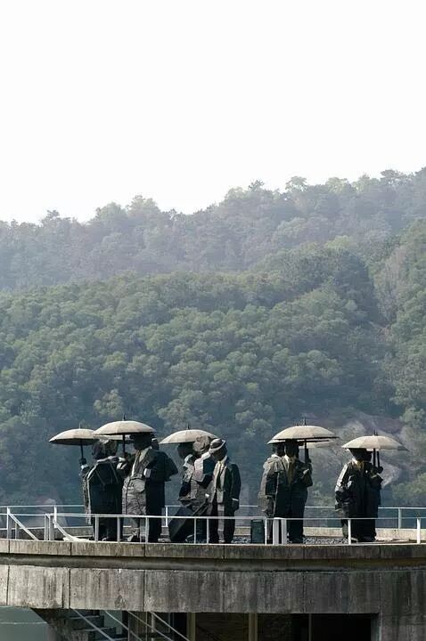 水库旁的水库管理室的头顶有一群黑色的人像,打着黑色的雨伞,我在那里围着他们转圈,有时还玩起捉迷藏,但我不知道那是台湾雕塑家朱铭先生的“人间”系列铜质雕塑。