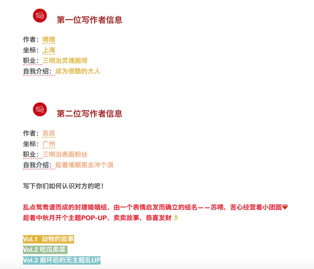 好友可以一起确认主题,如抓阄决定一切(坏狗+冬至),老编辑组(小飞人+校长),身心灵探险(掩面人+侠客)。