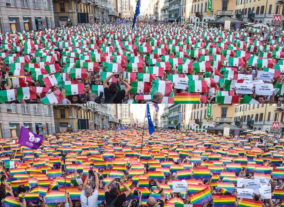 2018米兰骄傲游行提出了“民事结合仍不够(Civili Ma Non Abbastanza)”的口号,抗议性少数群体在主流话语中的“被消失”,呼吁消灭歧视。