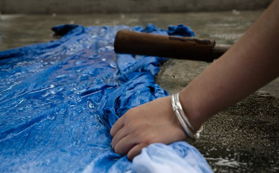 蓝草制作蓝靛,和酒、草木灰水生缸发酵染蓝
