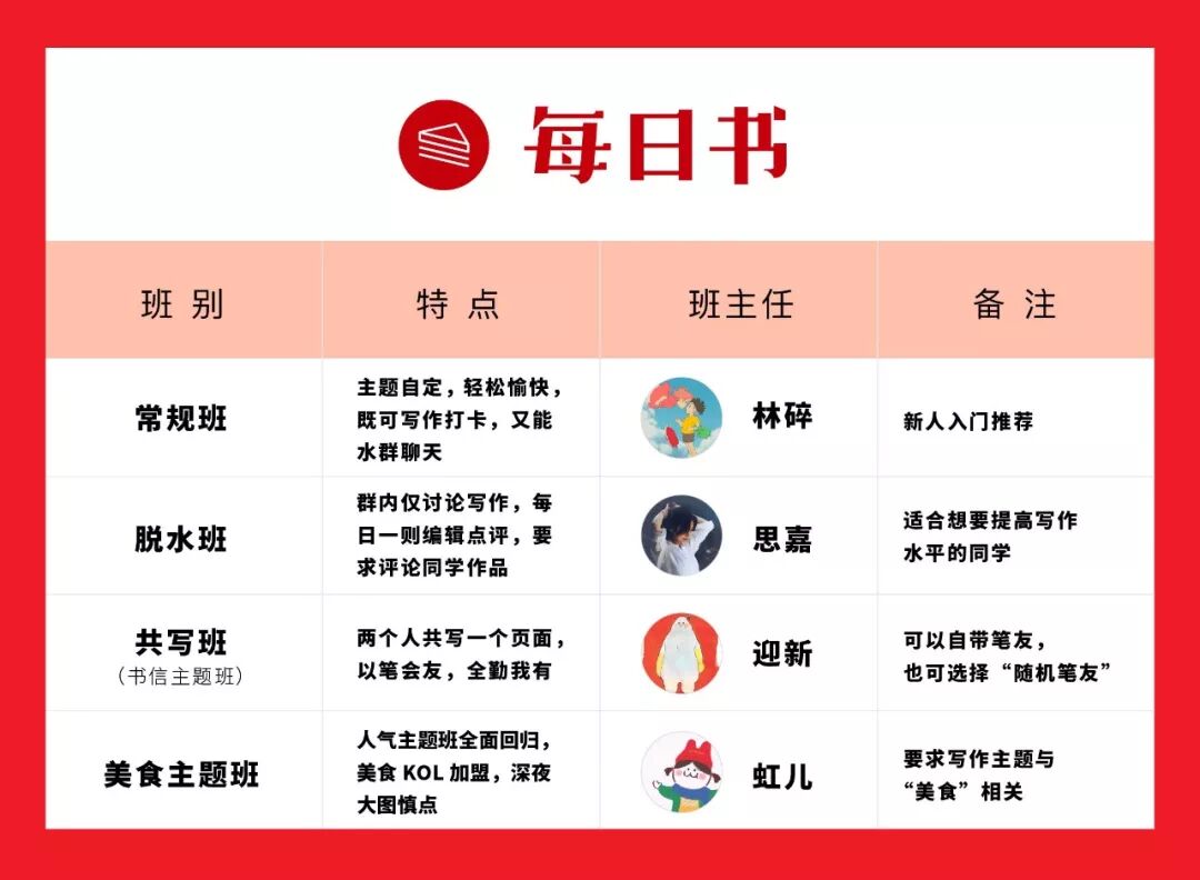 9月每日书“美食主题班”重磅回归,另有常规班、脱水班、共写班·特别版(“书信主题班”)同步上线。