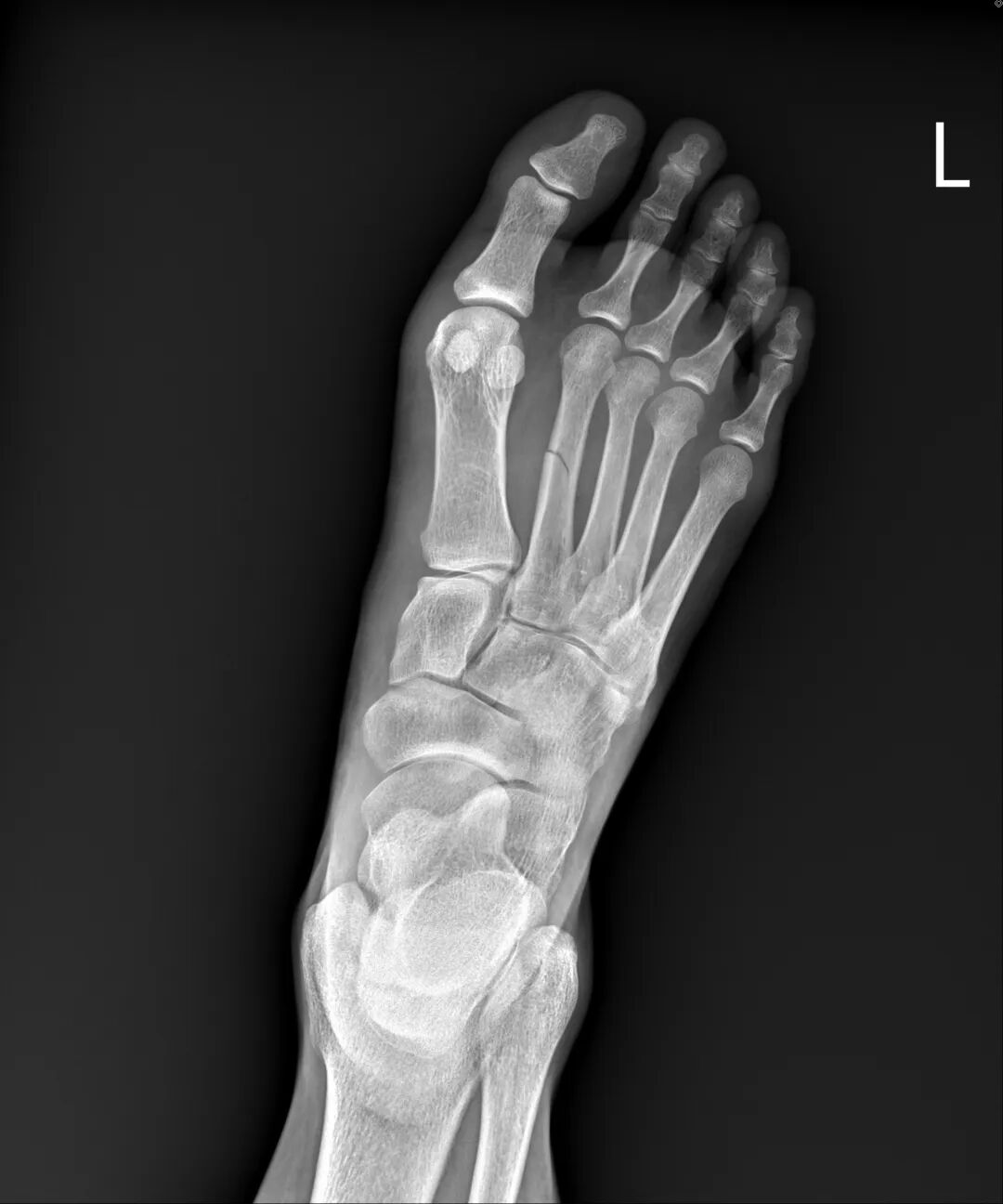 我马上说出骨头学名:跖骨,因为同一只脚第四根有断过。