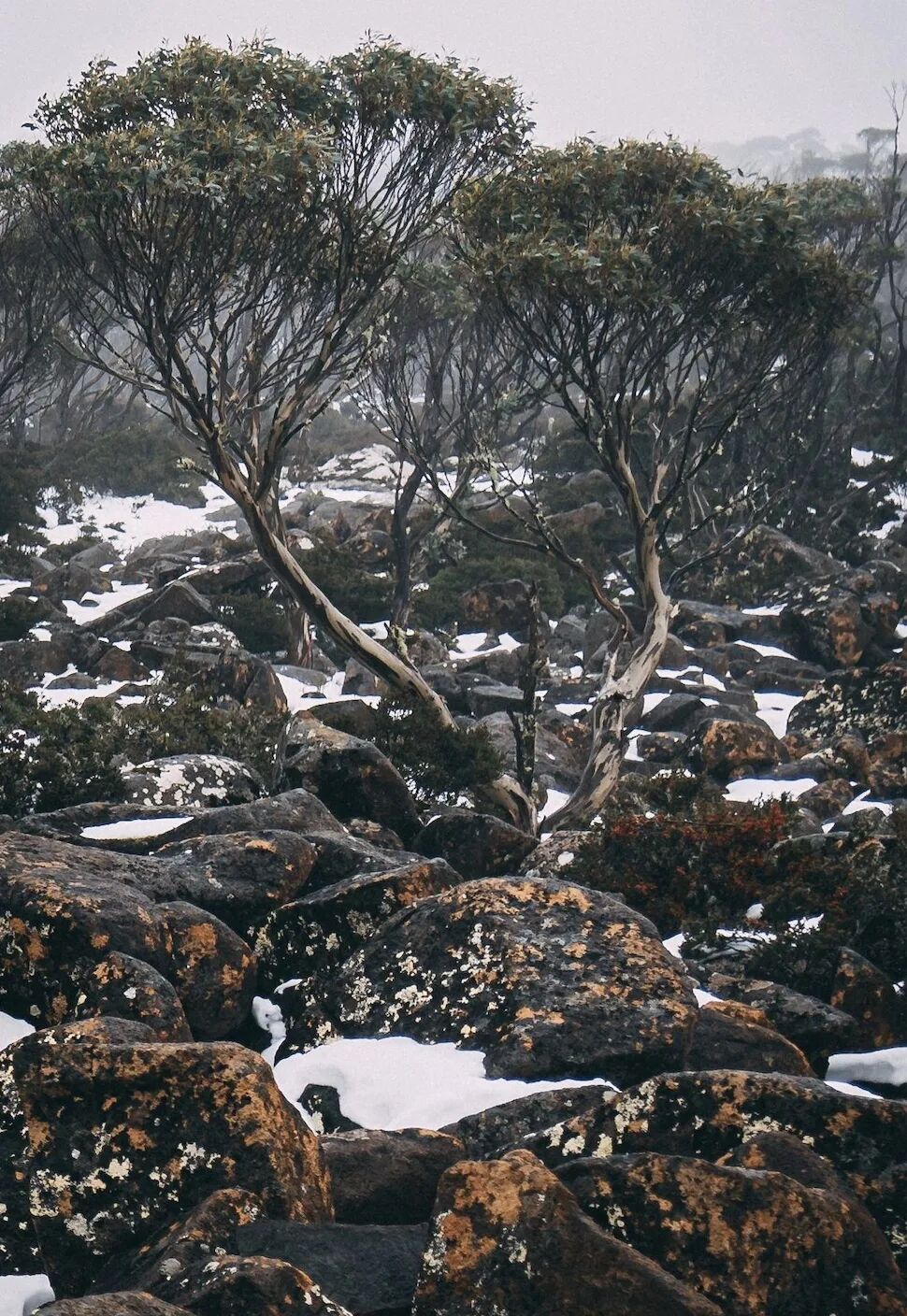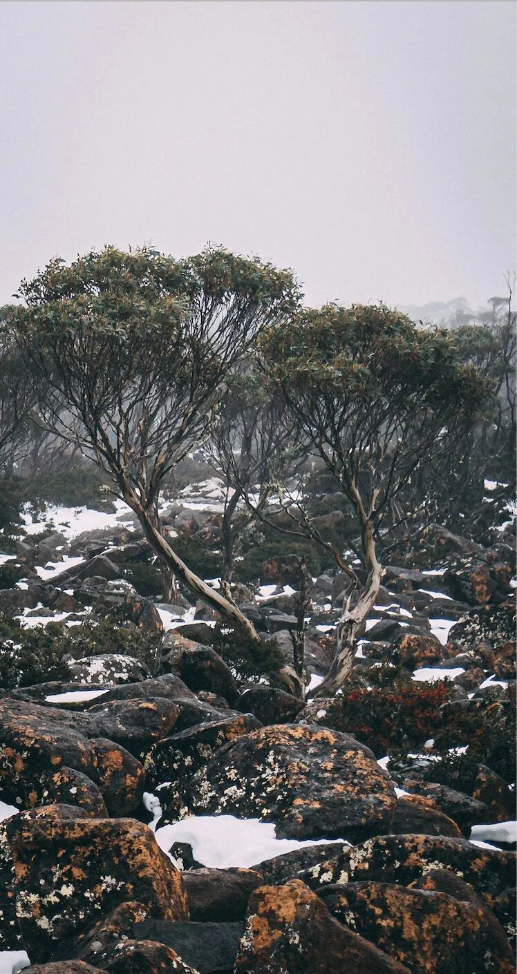 裁去天空后,树和石头的对比就更被凸显出来了。