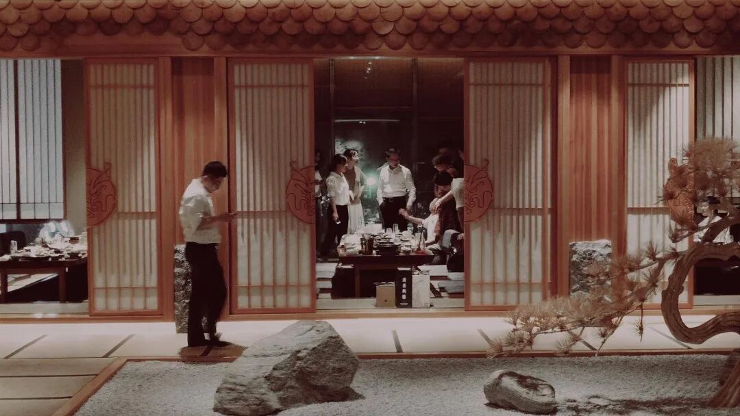 身在杭州的 Billy 拍下了某一次吃饭时遇到的情景。我很喜欢这张照片,因为那些日式屏风,还有这些人的姿势,白色衬衣,和整个画面颜色很搭配。右边的装饰也恰到好处。而且,画中有画,层次感很强。