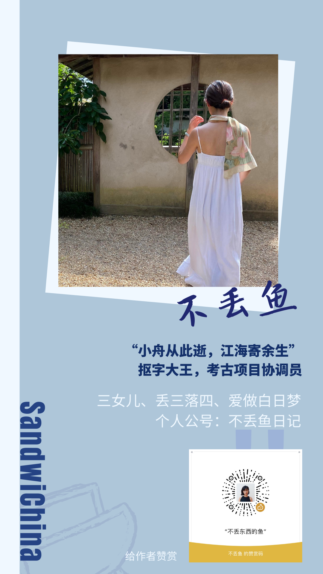 在27岁,不丢鱼曾感受到失败的电击。虽然在父母的口中,她是一个在美国婚姻美满、事业有成的女儿,但是“当我意识到记忆中的人都已经前行在各自的生活和事业轨道上,不少已经成就斐然,而我还沉浸在封闭的想象世界中不可自拔时,我感觉自己被失败电击全身、彻底摧毁了”。在八月短故事的写作里,她写到自己这几年的成长,这是一个女性用自己的探索回答一个奥德修斯式的问题,“你是谁,你从哪里来?”