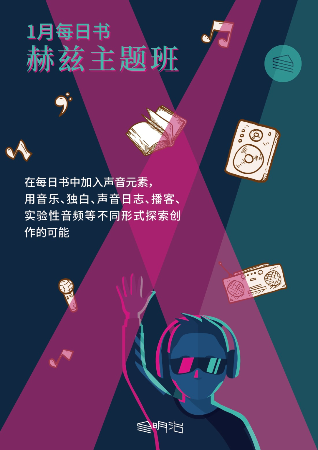 2021年1月,三明治每日书将开设以声音为主题的赫兹班,在每日书中加入声音元素,用音乐、独白、声音日志、播客、实验性音频等不同的声音形式探索创作的可能。你可以用30首歌串联起自己的2020年或更远的人生回忆,也可以仔细倾听身边的声音,重新认识自己所在的城市,甚至可以尝试策划制作自己的一档播客节目,在这里会有许多志同道合的小伙伴与你交流。