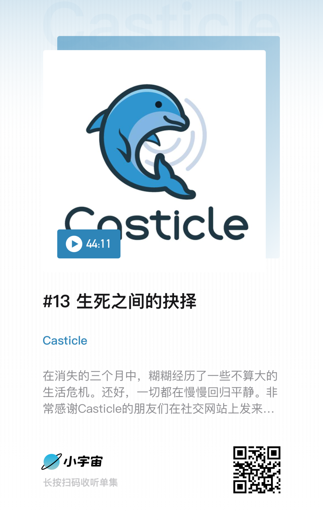 《Casticle》糊糊:在发布了《生死之间的抉择》那期节目之后的半个月,我收到了一个在卢旺达的听众的邮件。这是一件特别荣幸和感动的事情,因为我并不奢望我能有很广的听众,也不太期待有人愿意花时间写很长的邮件。那集节目里我提到了“在一些危机和公共事件当中医院资源如何分配”,给我写信的这位听众恰好就是相关行业从业者,在卢旺达做医疗资源分配。他的反馈让我觉得,原来我做的这一点小小的内容可以让他有所共鸣,一想到居然还有听众在卢旺达支持我,我就有十足动力继续把这个节目做好。