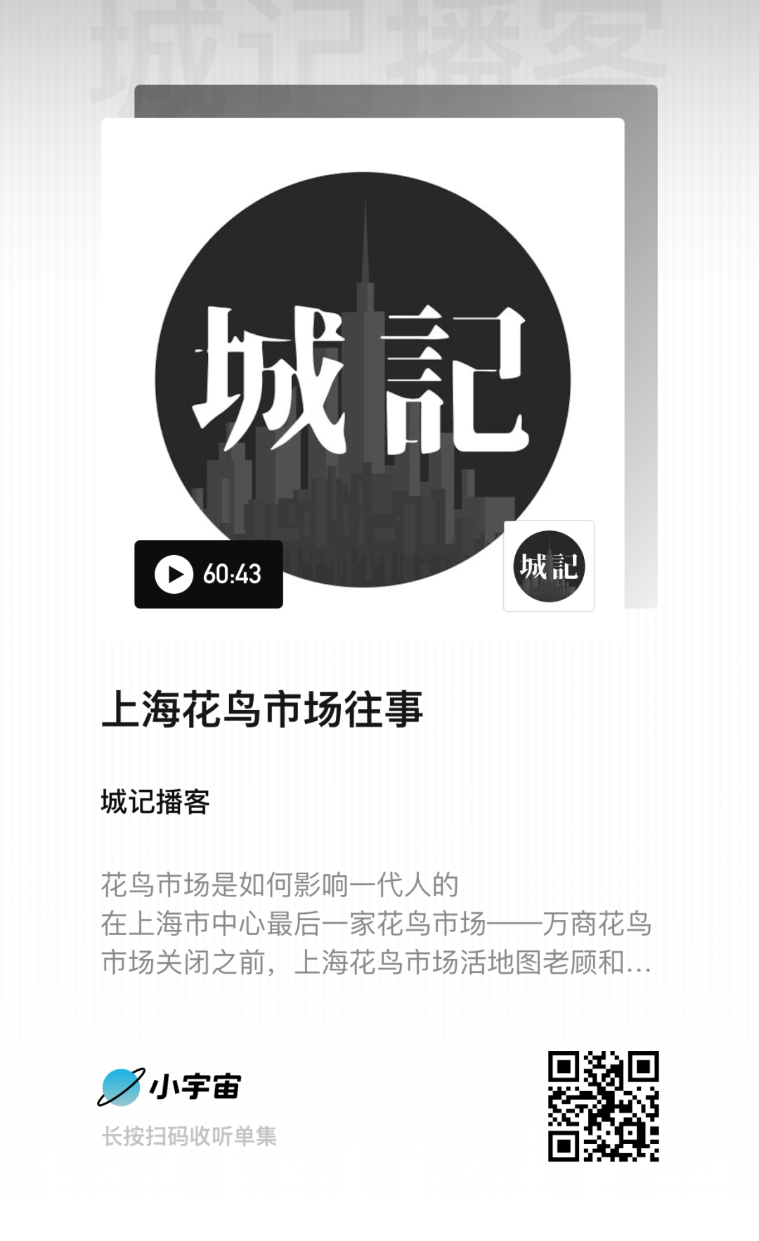《城记》王越洲:如果用一个词来概括2020年我的播客节目,我觉得是“连接”。我做播客最大的源动力来自于好奇心,比如去年上海关停市中心最后一家花鸟市场,在看到这个新闻之后,我就去做了一个小研究。研究中,我发现了一位朋友老顾,他玩花鸟鱼虫,也写相关的专栏文章,给大家普及这类知识。我就约他做了一期节目,名字就叫《上海花鸟市场往事》。去年一年,播客让我认识了很多像老顾这样的宝藏,打开了未知世界的大门。