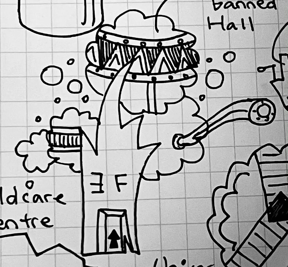将这个系列称作“世界”,那么就自然会想到“世界地图”。Monochromatic World是真实存在的,我为它绘制了详细的地图。在这幅“地图”里,每一个建筑其实更像是一个小的想法或者是观点。之前有过很多零碎的想法,于是就在这里把它们一点一点地画到一起了。