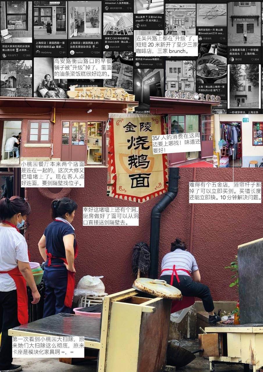 其实在UNO摩登公寓的路线里覆盖的区域,之前都是很生活化的。后来湖南路街道那边变得更网红了,更受欢迎一些。社交媒体上的广泛传播把更多游客带到这里,之后就生长出一些并不属于此地生活的业态,比如说密度明显变高的咖啡店、蛋糕店和冰淇淋店。这个状态其实是不符合生活逻辑的,比如说哲晖家楼下曾经有那种比较普通的面店、修鞋修包的店铺,如今似乎正在陆续消失。