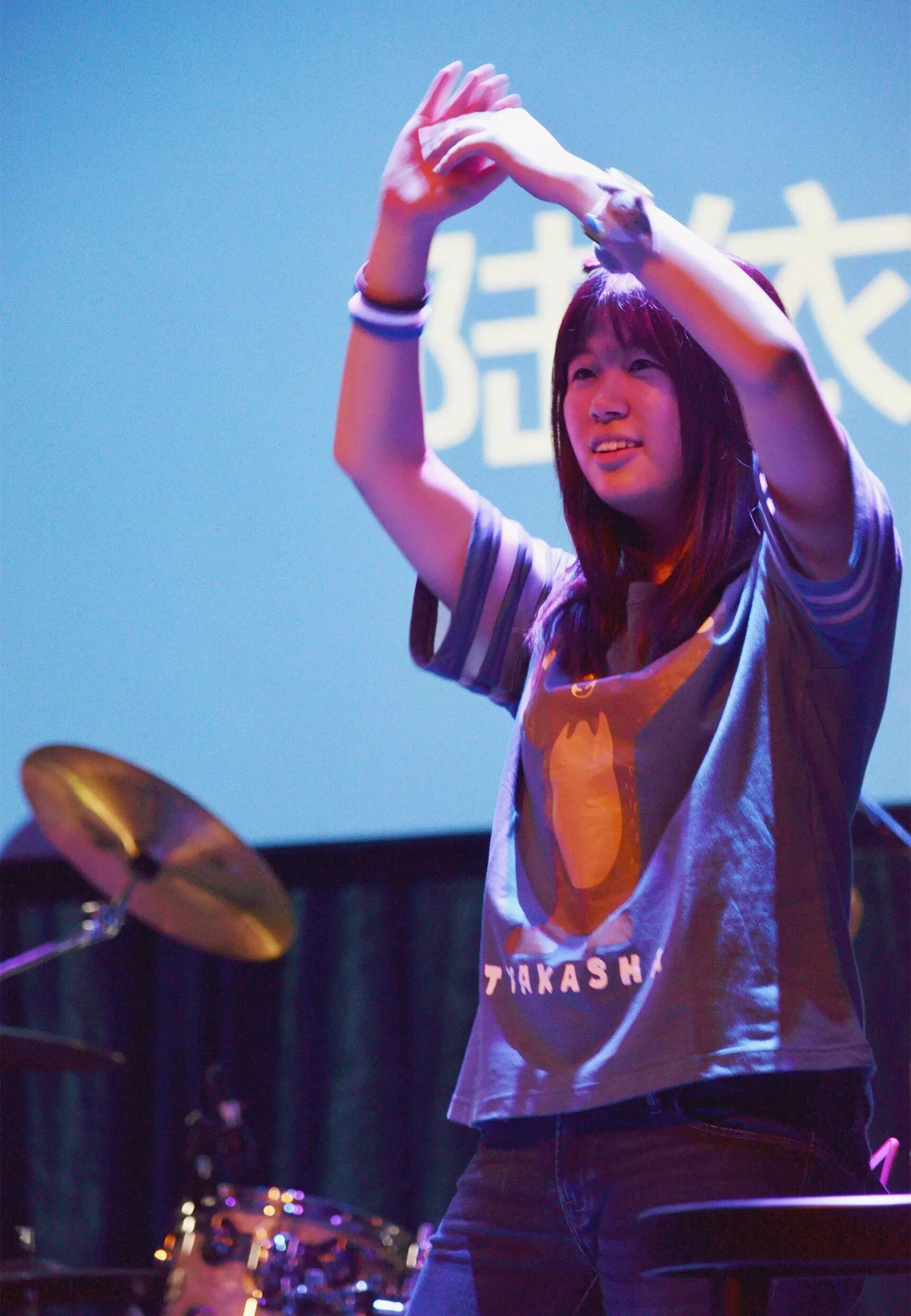 今年是OWE ROCK的第三届,汪南汐就是今年的召集人和现场统筹。为了配合这届海洋保护的主题,会场内的主色调是蓝色。四个小时不间断的摇滚时间内,气氛一次次被推向高潮,八支学生乐队和三个学生舞团依次上台卖力演出,其中不乏年仅12岁就曾登上过迷笛音乐节的鼓手。乐队换场的间歇时间,汪南汐还被热情的观众们拱上台学跳最近流行的韩国女团热舞 《Up & Down》。