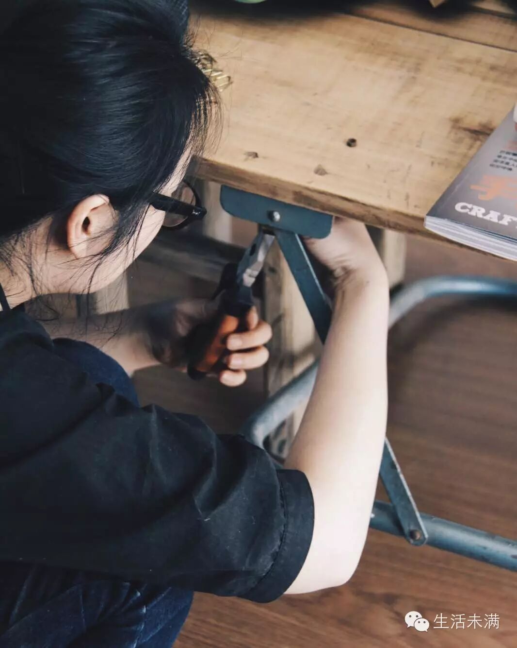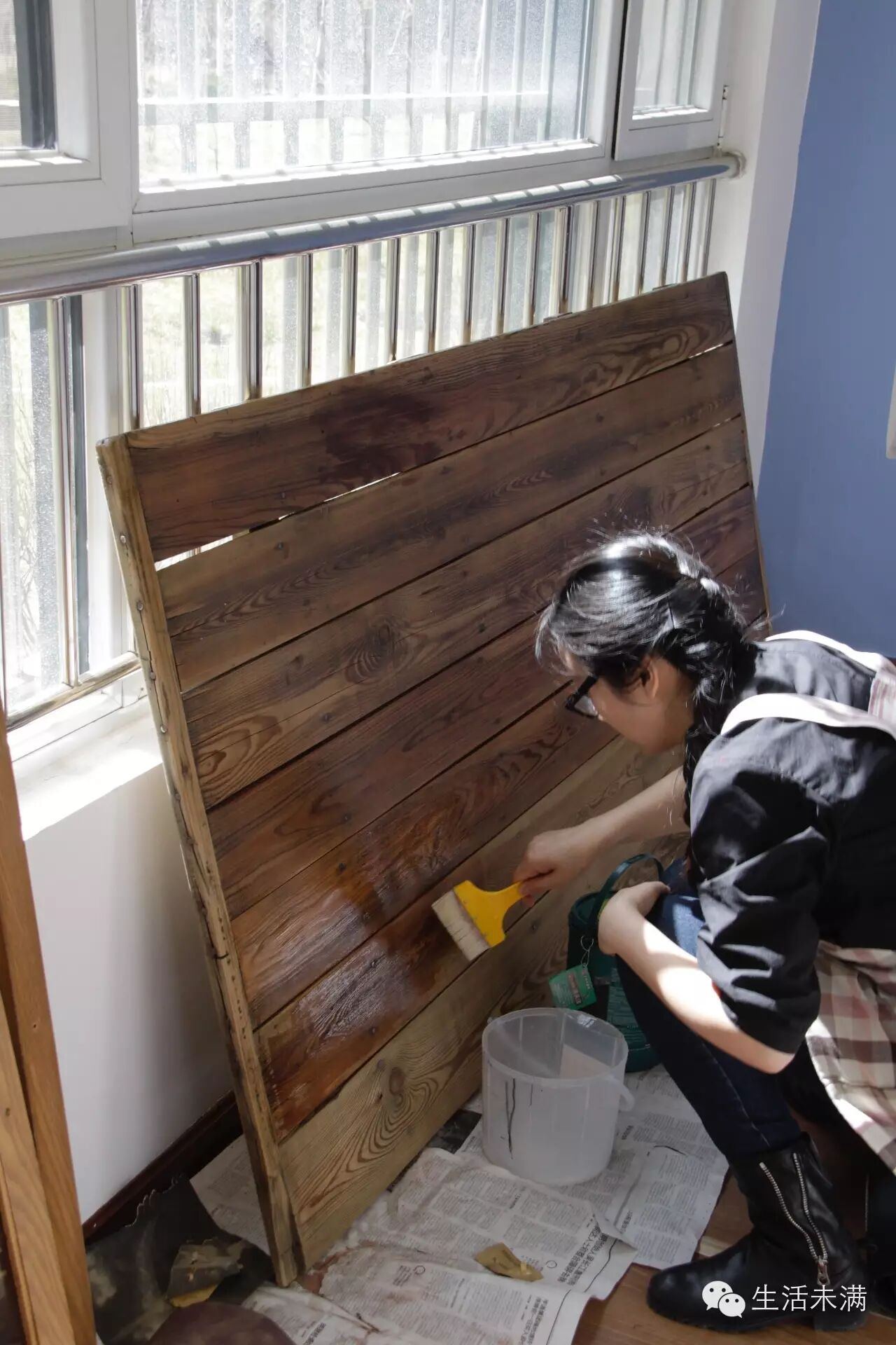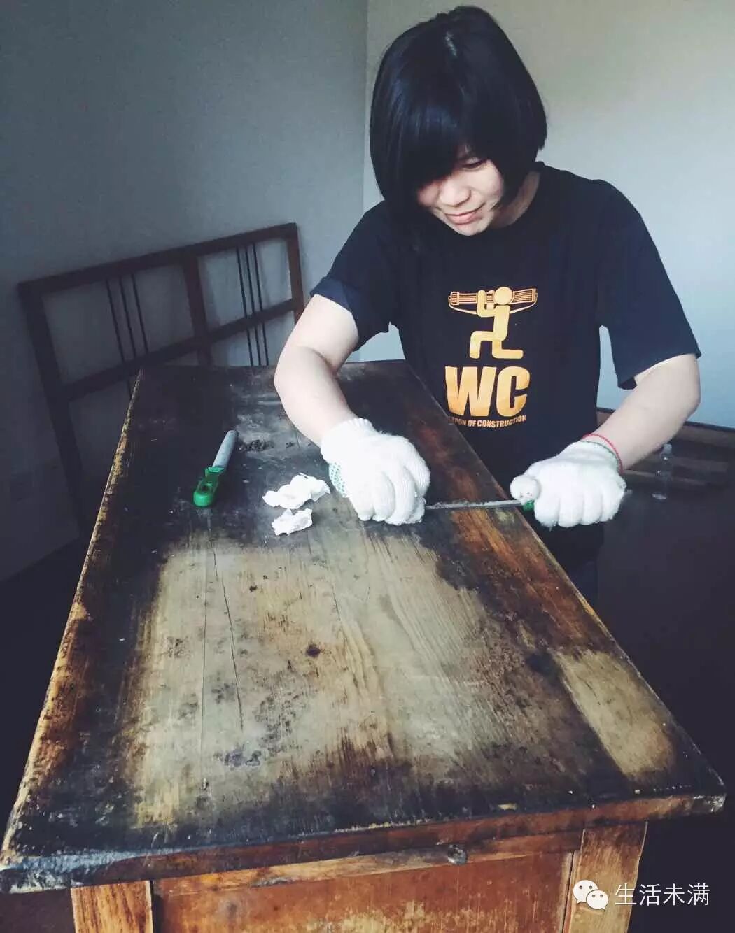 就像这块废旧的床板,经过一道道工序,变成了一张纹理特别、人见人爱的操作台,以新的姿态存在着。
