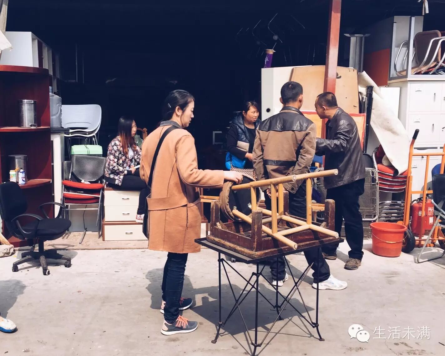 将一件件被丢弃或被廉价处理到旧货市场的旧家具和旧物器捡回来。