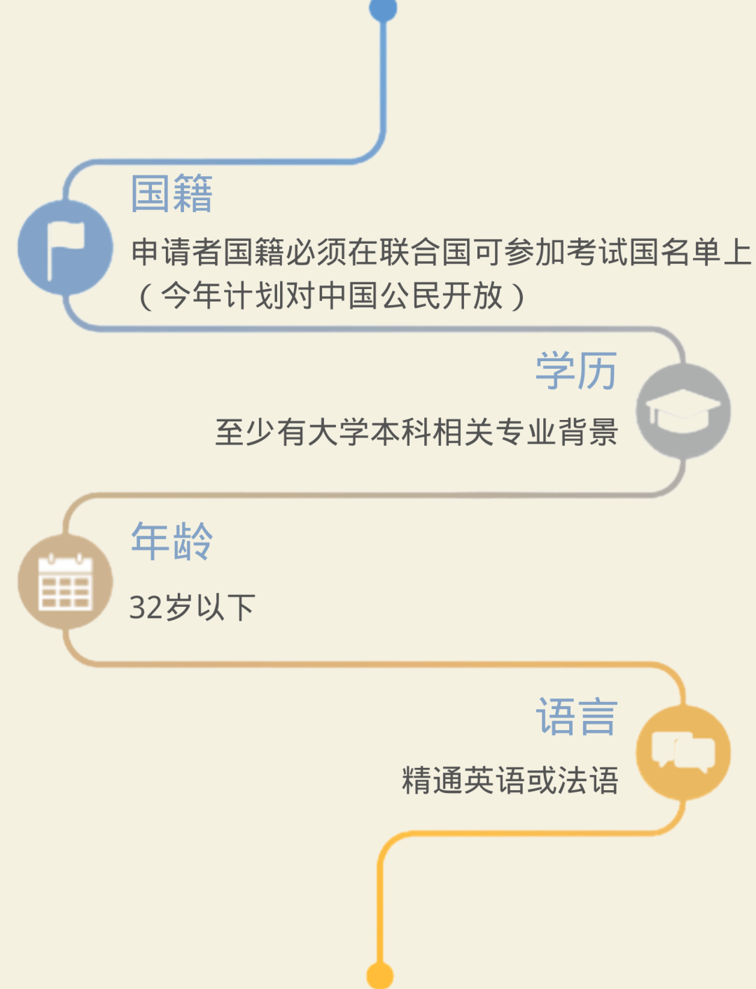 如果超过60名来自同一国家的申请人申请同一考试领域,这些申请人将根据以下附加资格的分数进行进一步筛选和排名:完成的最高教育水平、联合国官方语言知识和相关工作经验。