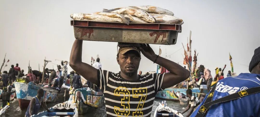 ©粮农组织图片/John Wessels|塞内加尔的渔民从船上卸下鱼,在当地市场销售并出口到其他国家