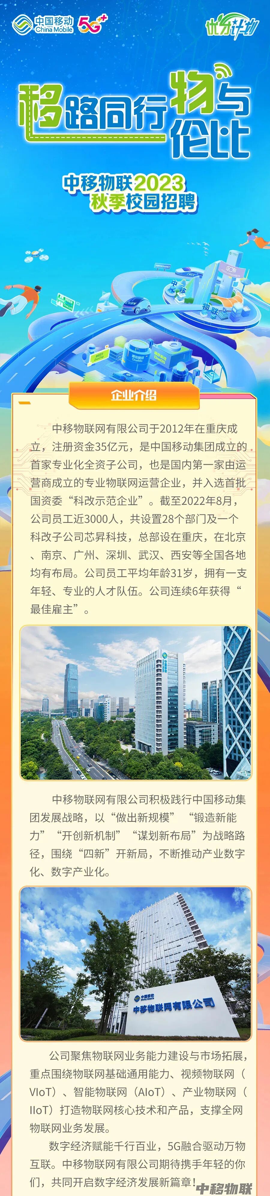 【校园招聘】中移物联网有限公司2023届校园招聘