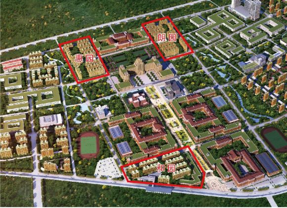 ∎ 惠园(B区):位于创新港西北部,毗邻4、5号巨构。规划电信、数统、管理、外语、公管、金禾、经金等7个学院新生入住。