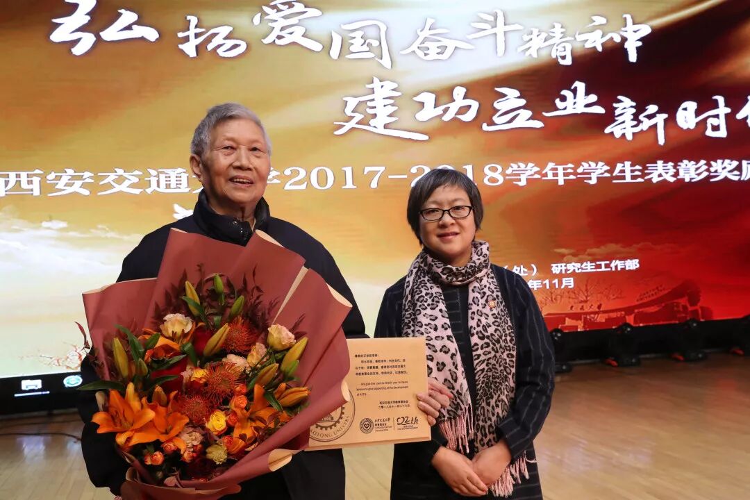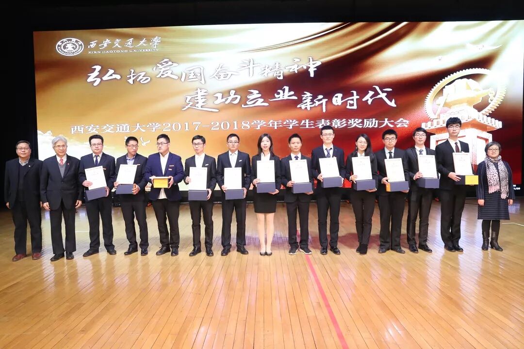 在颁奖现场,郑庆华为获得“国家奖学金”“国家励志奖学金”的本科生、硕士研究生颁奖;王树国为本科生标兵、硕士标兵、博士标兵颁奖;席光为获得校级奖学金以及“优秀留学生奖”的同学颁奖;陶文铨院士为获得“陶文铨奖学金”的同学颁奖;王世绍为“王世绍助学金”的获得者颁奖;企业负责人分别为各类社会奖学金获奖者颁奖。