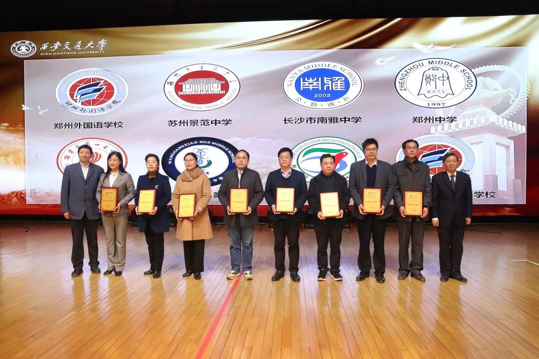 大会上,王树国向与会的八所重点中学校领导授予“卓越生源基地”奖牌,张定红、西安交大教育基金会秘书长赵卫滨分别为陶文铨、王世绍以及资助企业颁发感谢铭牌。