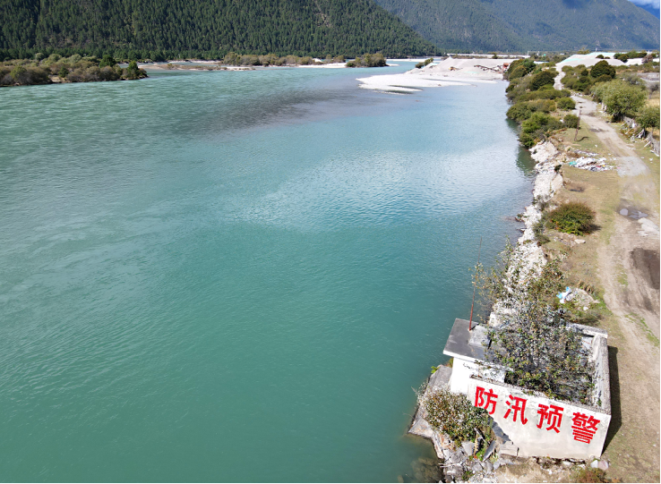 西安交大人居学院全球环境变化研究院科研人员在青藏高原南部进行河道勘察拍摄照片