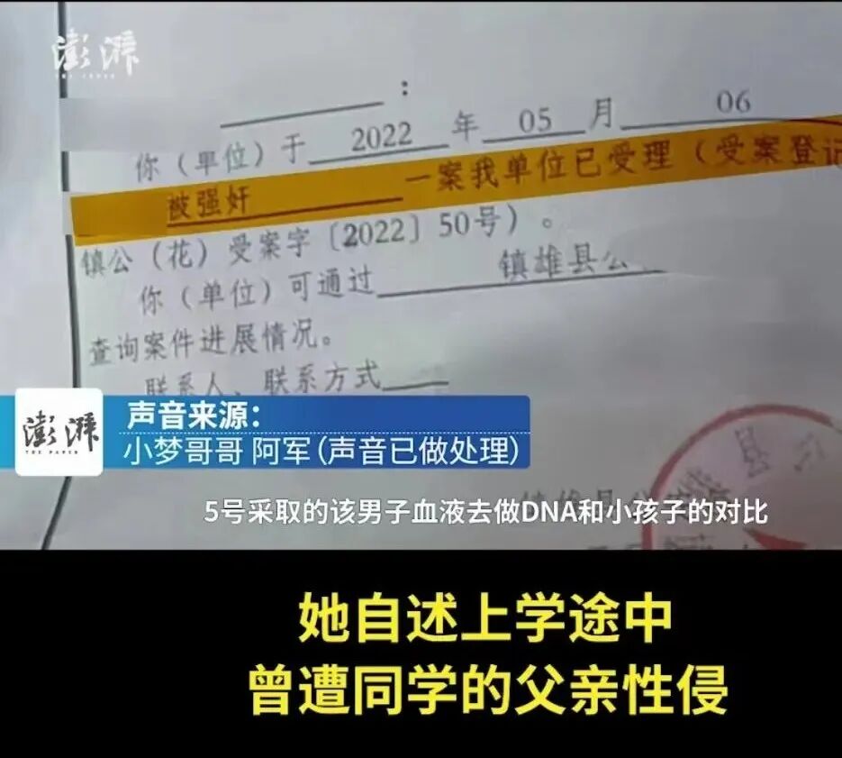 小梦在视频中说,她不知道自己会怀孕,直到肚子一天天大起来才明白怀孕了,“我不知道该怎么处理,不知道怎么办,又不敢给任何人说起,很害怕很无助。”通过权威渠道获悉,5月6日,当地县公安局受理了小梦亲属的报警,后提取了蔡某某的DNA与新生儿作比对。