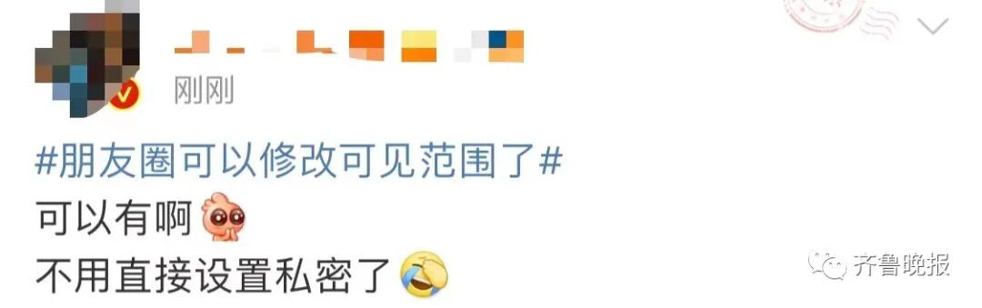iPhone用户更新微信至最新版,点击一条自己的朋友圈,点击右上方三个灰色的点,会出现修改可见范围:公开、私密、部分可见、不给谁看。