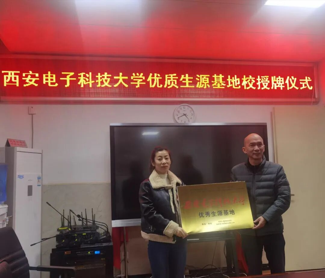 12月24日,我校人文学院朱锋刚、陈元龙前往兴平市开展招生宣传活动,与兴平市西郊高级中学共建我校“优秀生源基地”,并颁发高考录取喜报,在“优秀生源基地”签约授牌仪式中,我校人文学院两位老师对中学学子进行了招生宣讲,大力促进了中学教育与大学教育的有机衔接,扩大了西电在兴平地区的影响力。